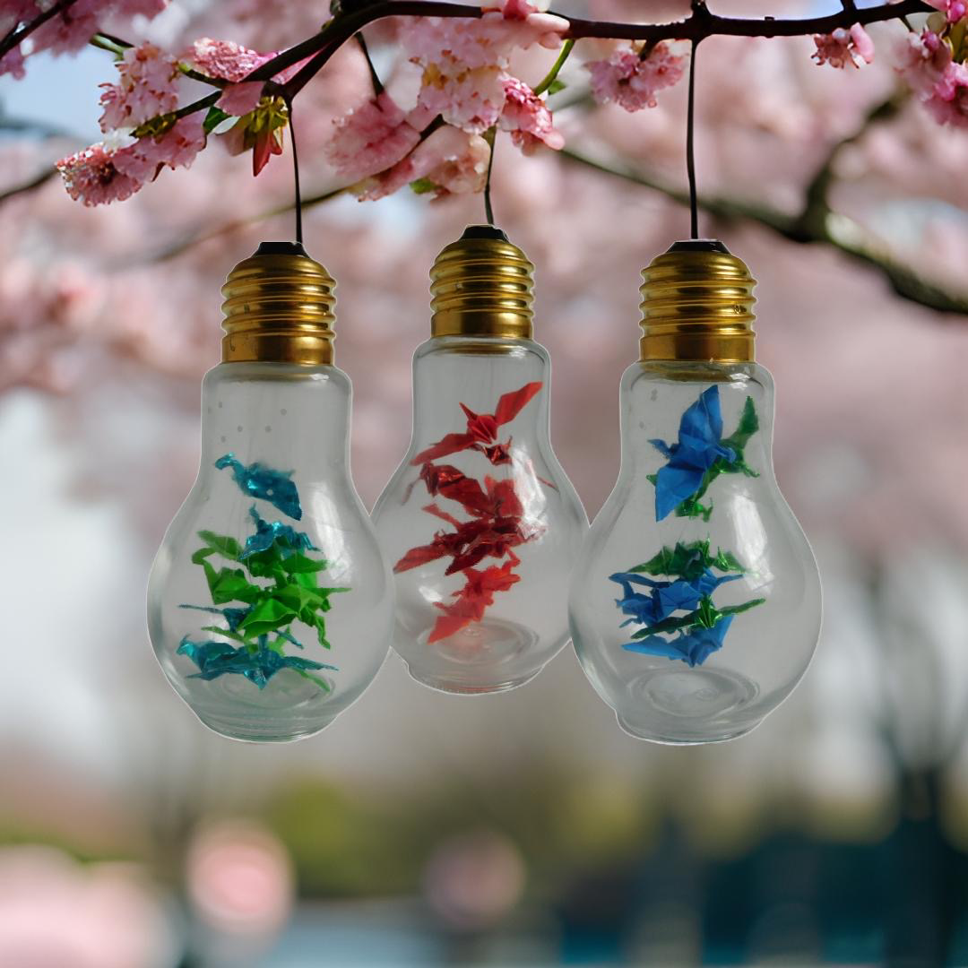 Sleep soundly with these adorable glow-in-the-dark dragons as they soar around around their lightbulb terrarium✨ The Dragon-arium is filled with hand-folded, glow-in-the-dark origami dragons, flying in a beautiful glass lightbulb, blending the magic of the cosmos with the whimsy of a fantasy taking flight.
