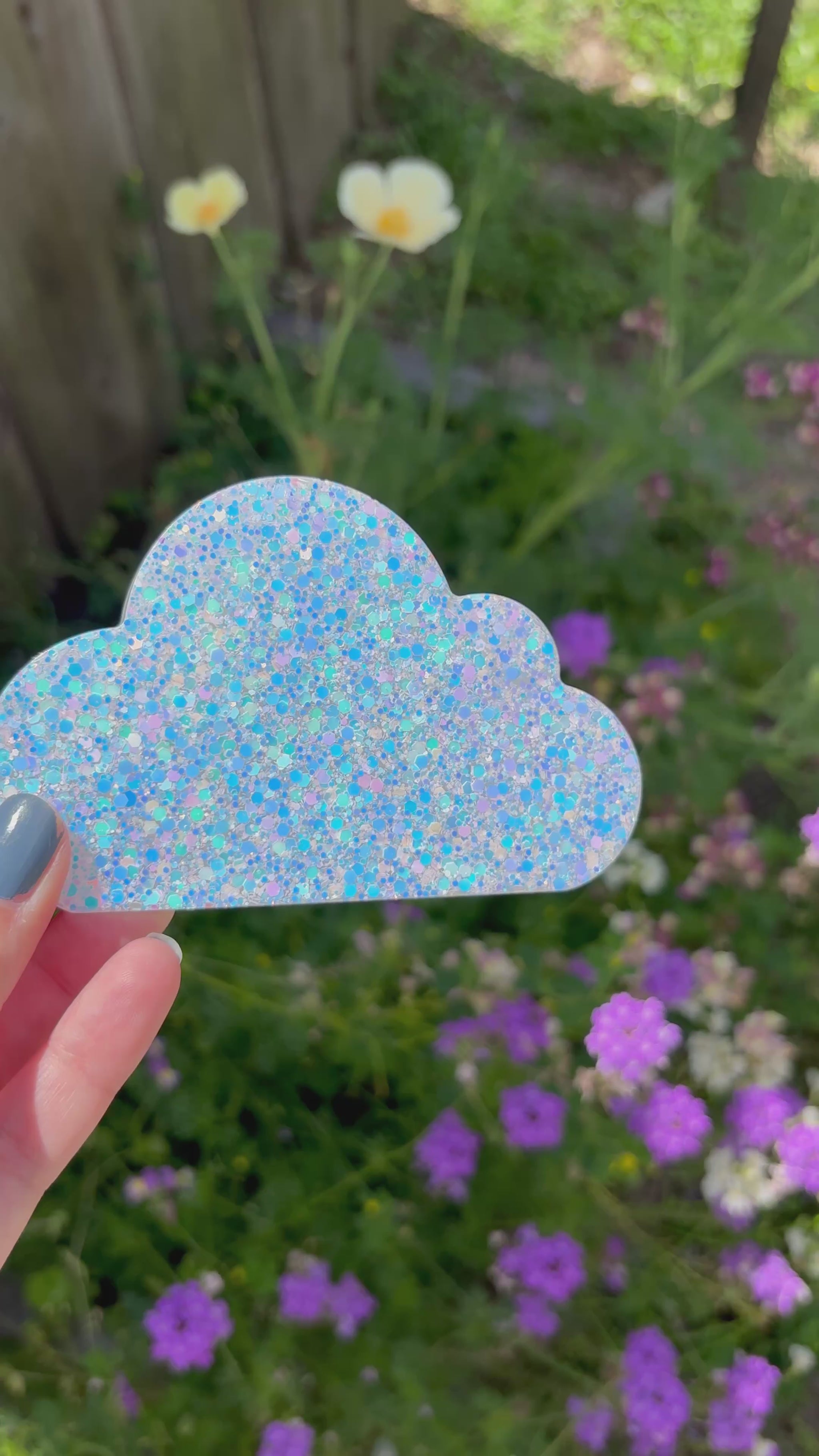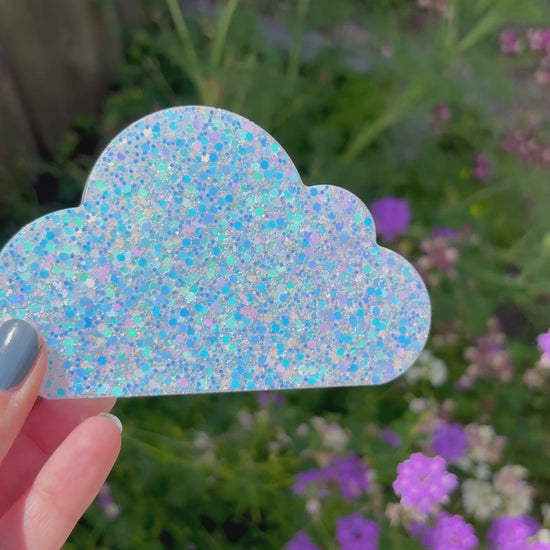Handmade Resin Cloud Shaped Coaster With Sparkly Glitter, White Reversed